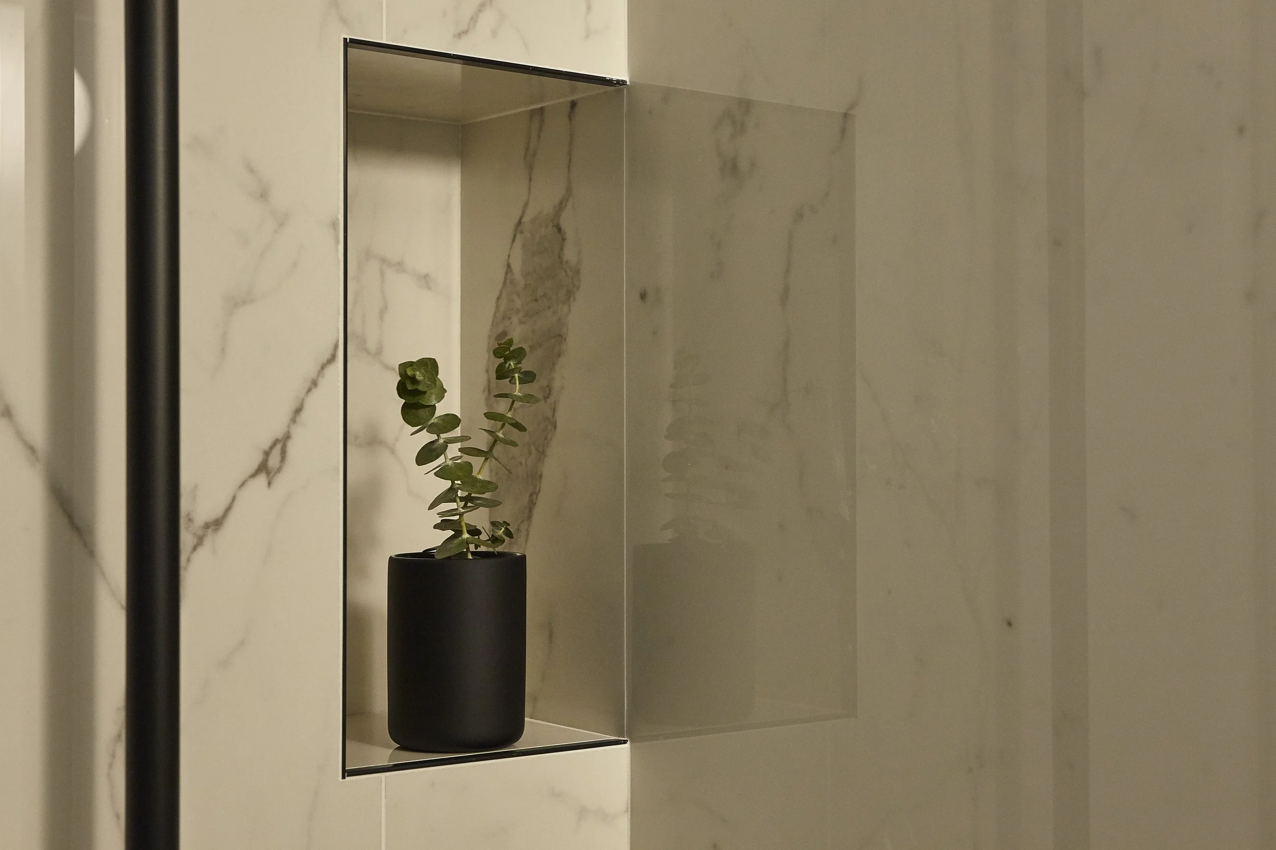 Ad APTO. è stato chiesto di riprogettare entrambi i bagni, per renderli accoglienti e contemporanei ed aiutare la cliente nella prima fase di arredamento. Abbiamo inoltre restaurato il parquet e la scala, elemento super centrale della zona living. Il risultato è una casa moderna ma calda, con tocchi di colore e soluzioni su misura.